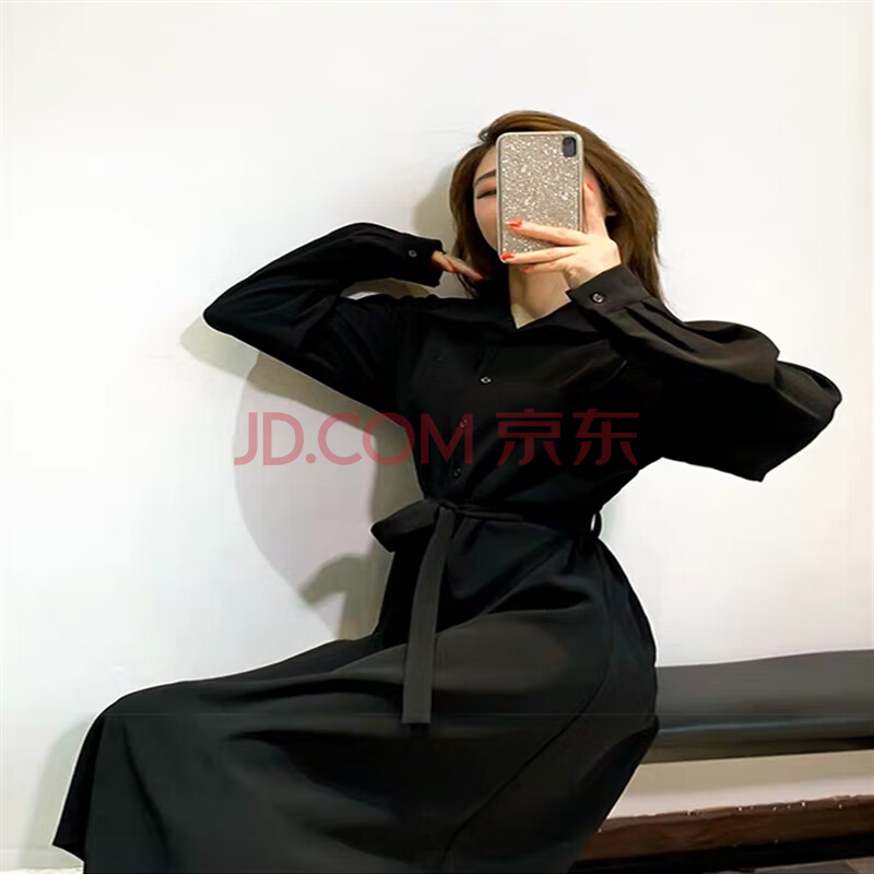 法式复古收腰显瘦气质黑色连衣裙女早秋衬衫裙子时尚女装