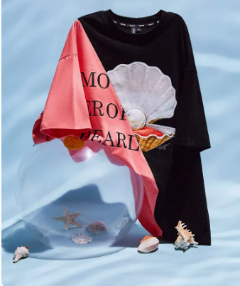 中长款印花撞色拼接T恤女2022夏季新款宽松上衣