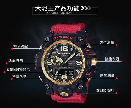 Casio旗舰店GWG-1000GB大泥王黑金男士运动手表卡西欧官方G-SHOCK