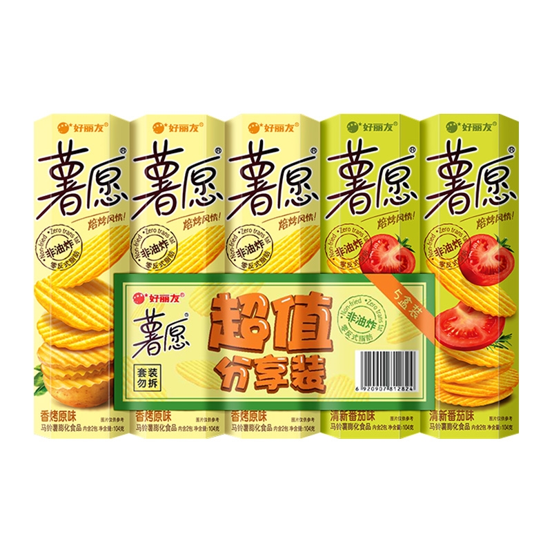 好丽友薯愿薯片非油炸超值礼包104g*5膨化食品休闲零食 1件装