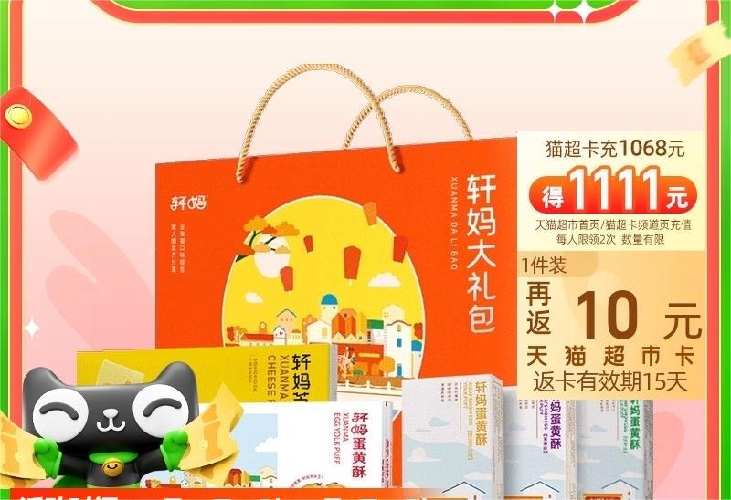轩妈蛋黄酥糕点月饼礼盒大礼包18枚990g送礼礼盒休闲零食礼包 1件装