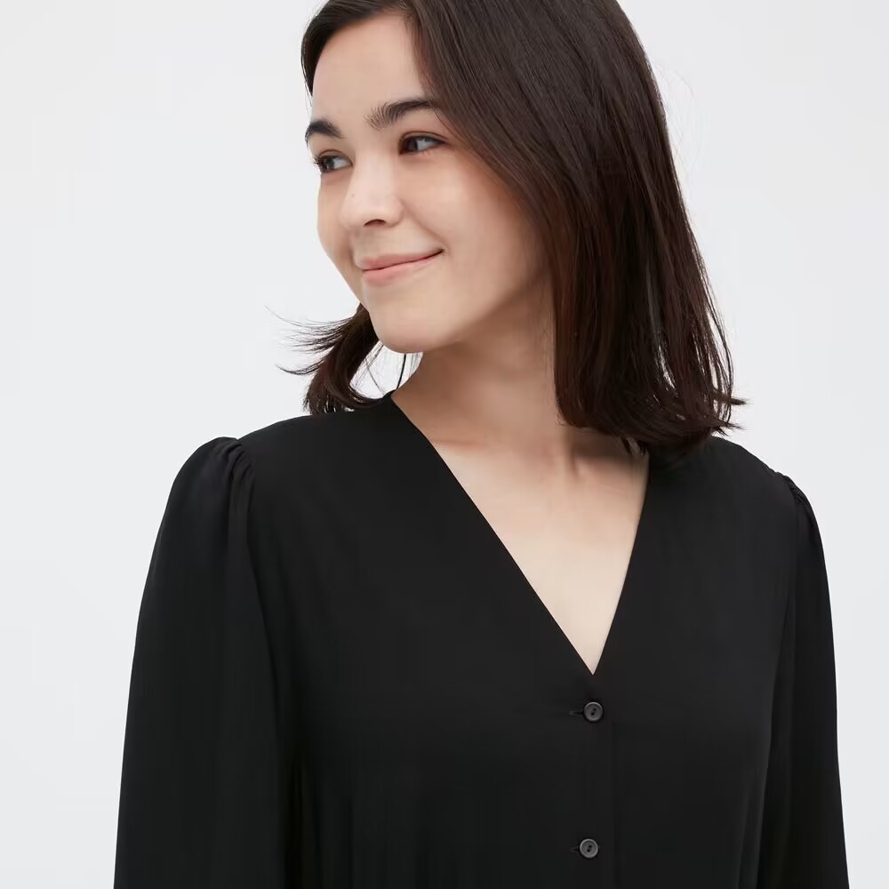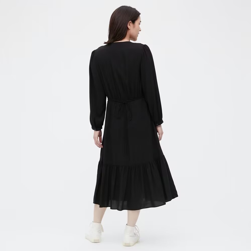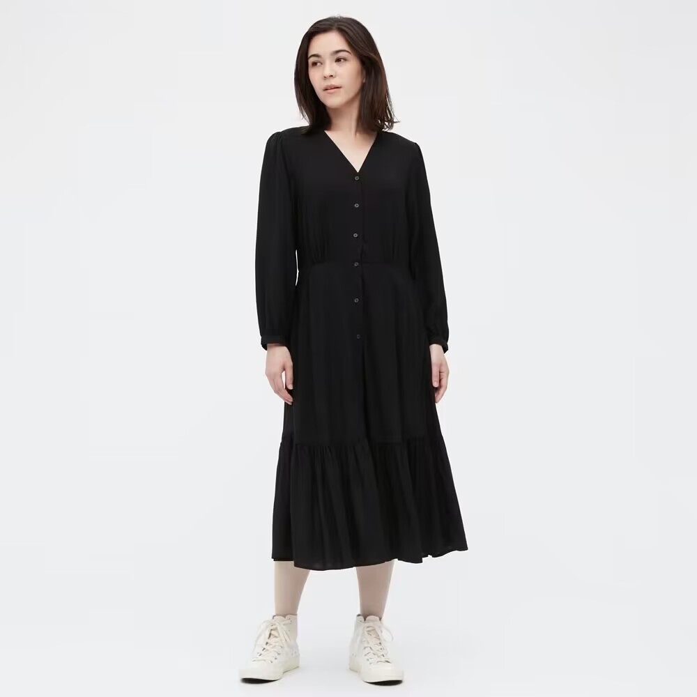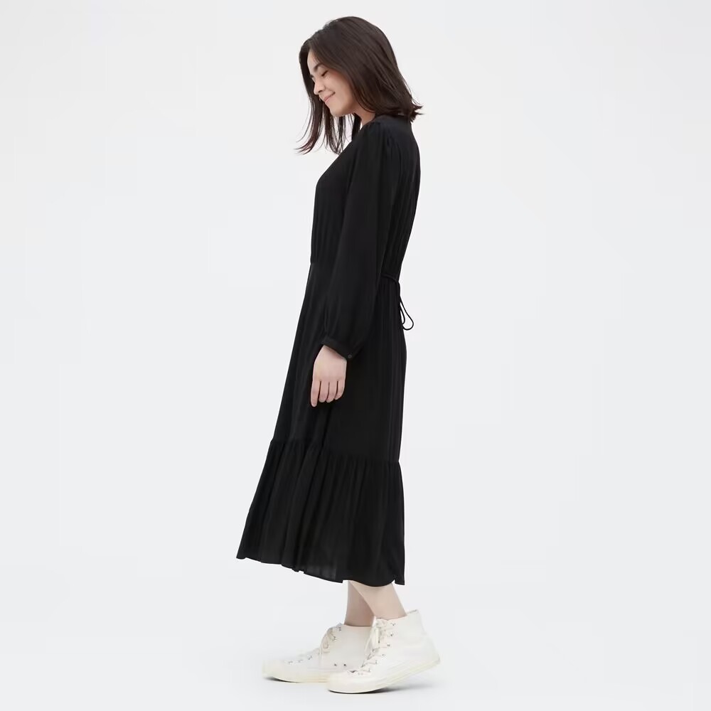 天鹅 女装 V领收腰喇叭连衣裙& #40;七分袖长裙含内衬& #41;