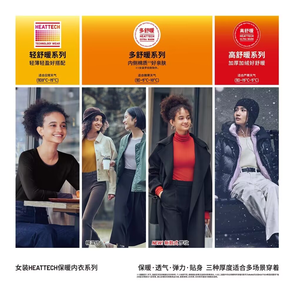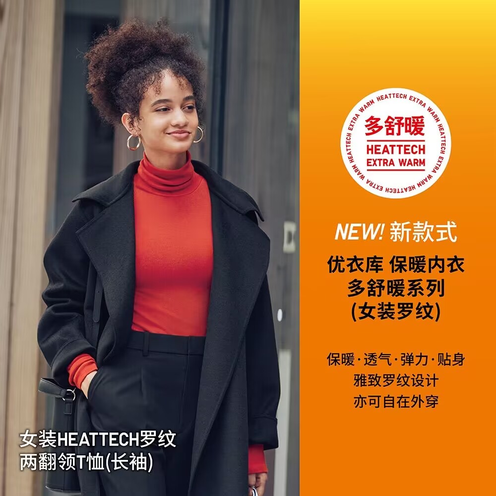 天鹅 多舒暖 HEATTECH黑科技保暖衣罗纹无侧缝女装两翻领