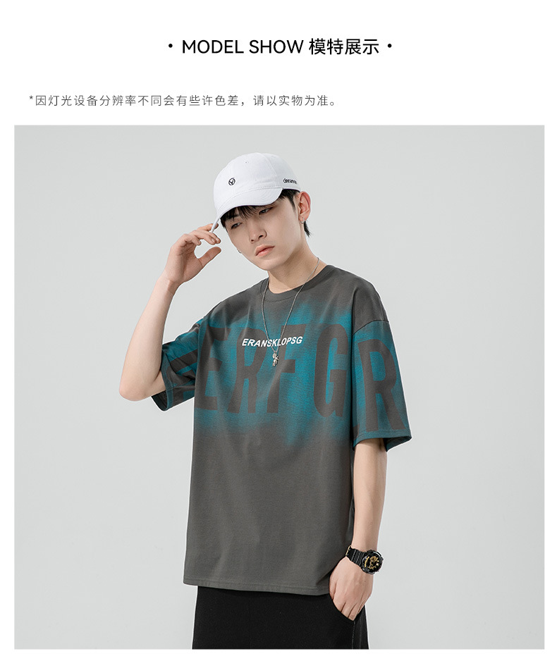 短袖t恤男潮牌潮流ins宽松圆领字母印花男士半袖体恤日系潮牌男装