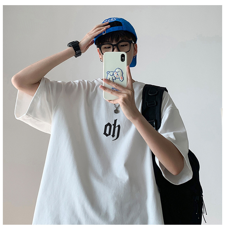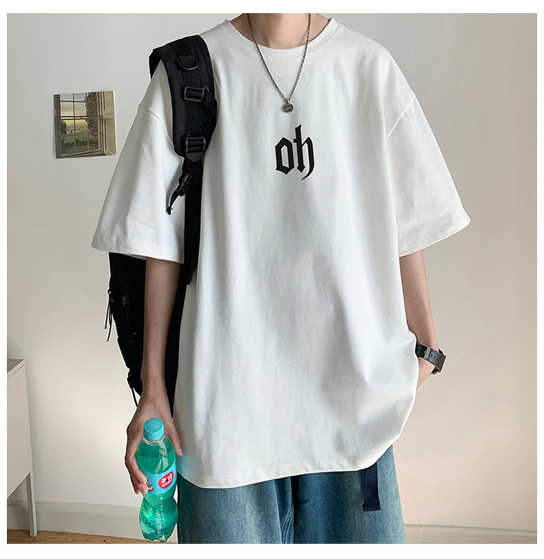 学生纯棉短袖T恤男生2022宽松夏季新款印花圆领打底T恤