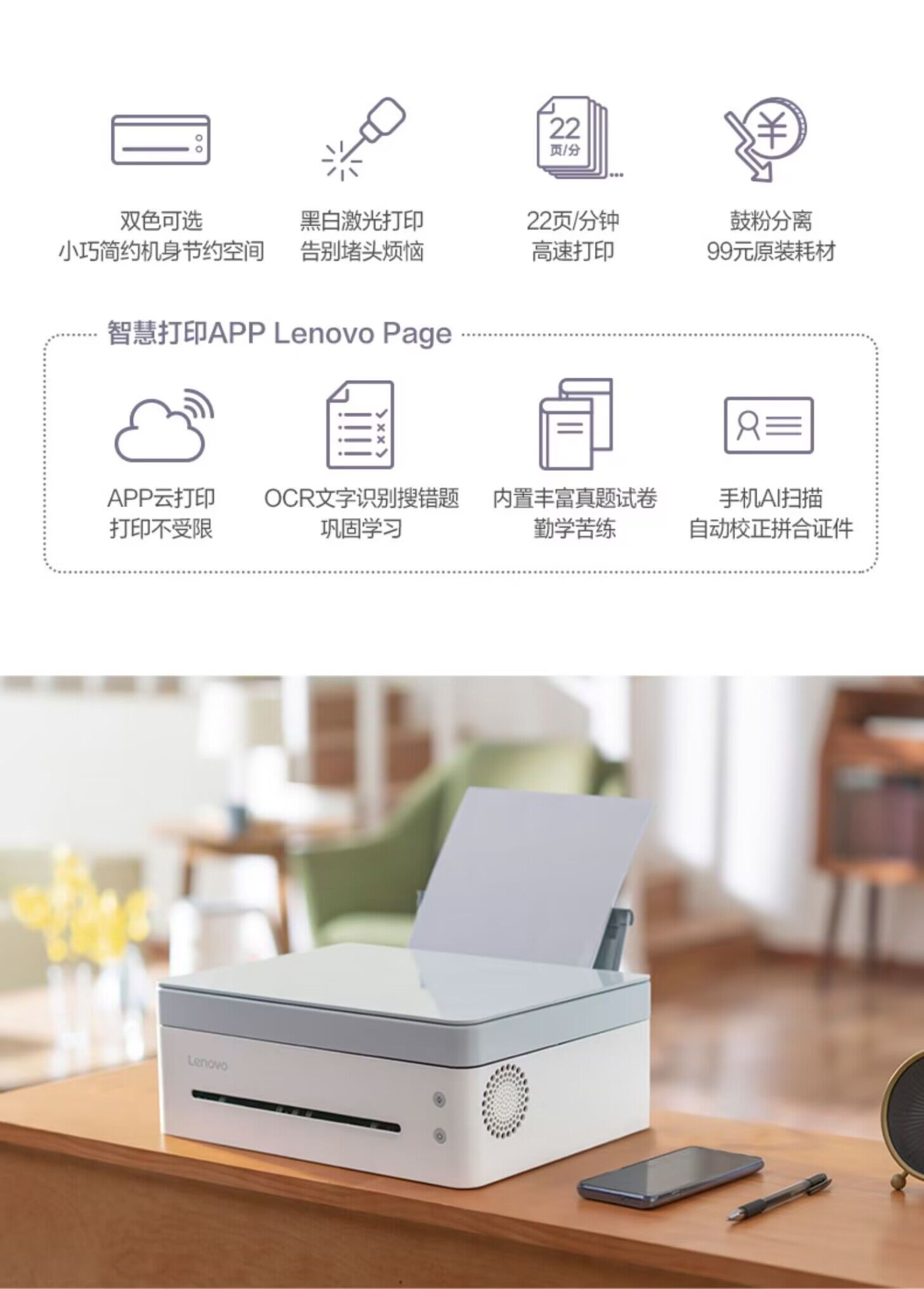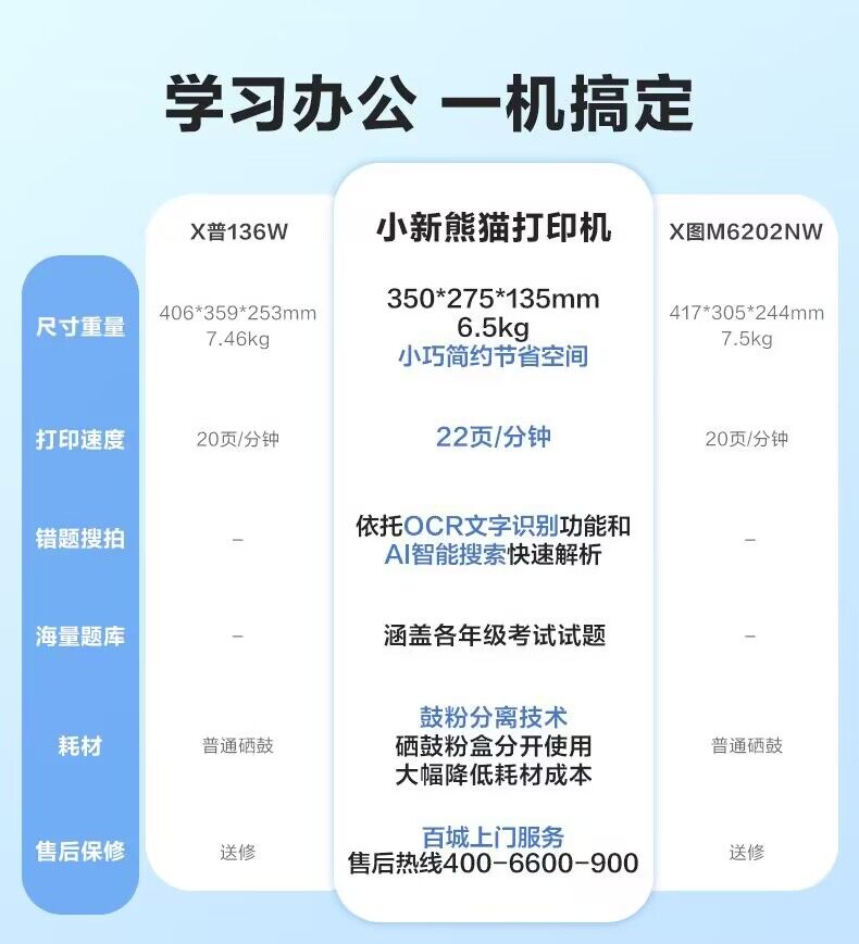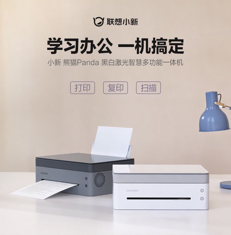 联想小新熊猫Panda黑白激光打印机小型家用学习办公商用