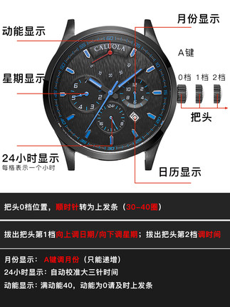 正品卡罗莱全自动机械表时尚男士手表商务男表真皮带防水运动腕表