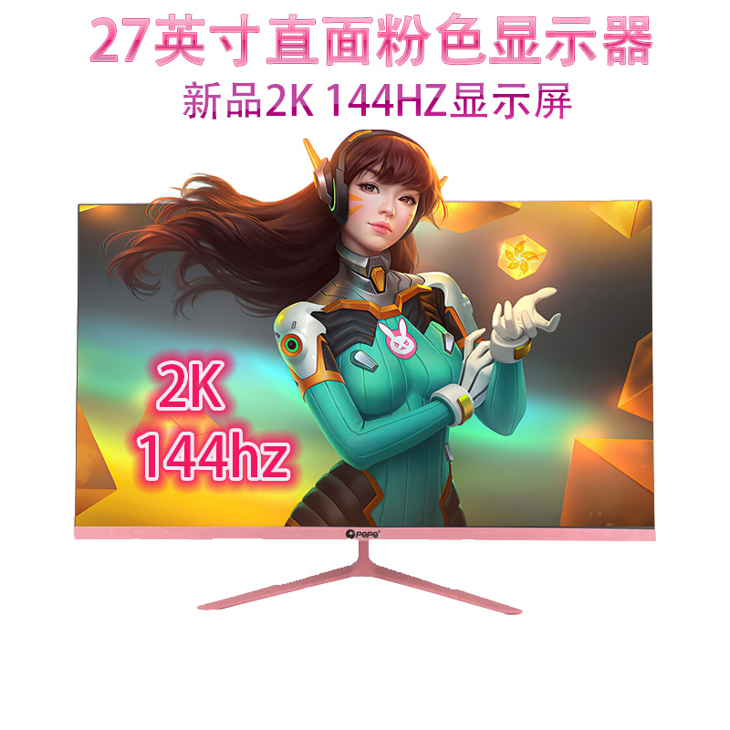 全新 27英寸2K144HZ粉色显示器电竞曲面显示屏幕电脑高清网红主播