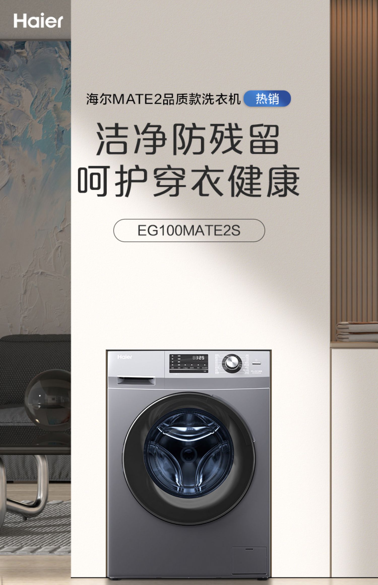 海尔 滚筒洗衣机10公斤全自动家用变频大容量除菌洗脱一体MATE2S
