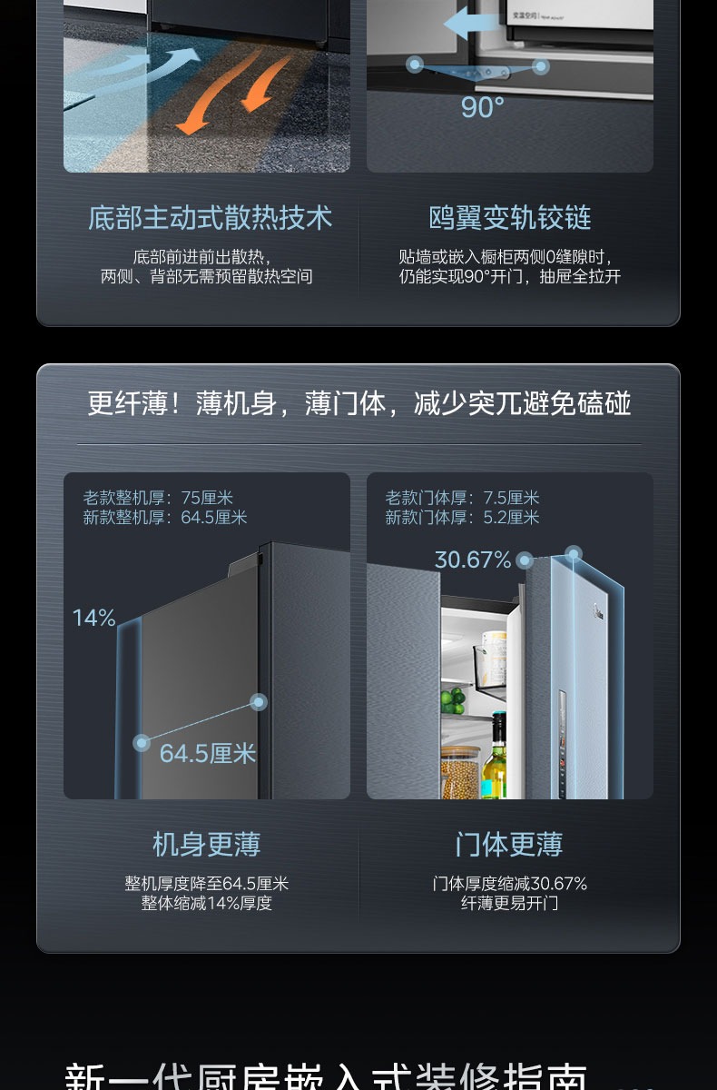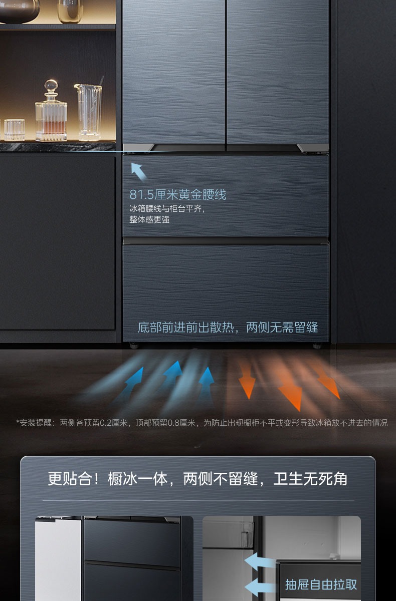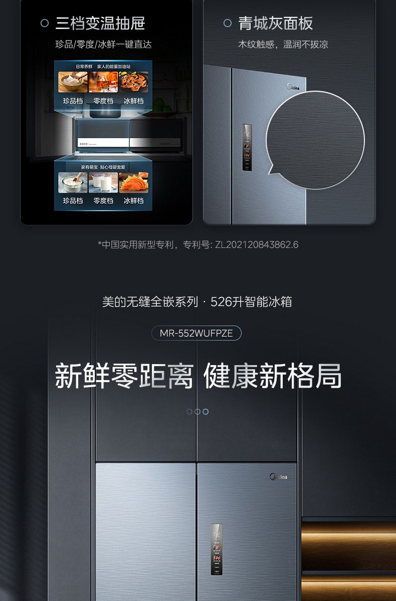 美的冰箱552超薄无缝法式多门底部散热家用大容量全